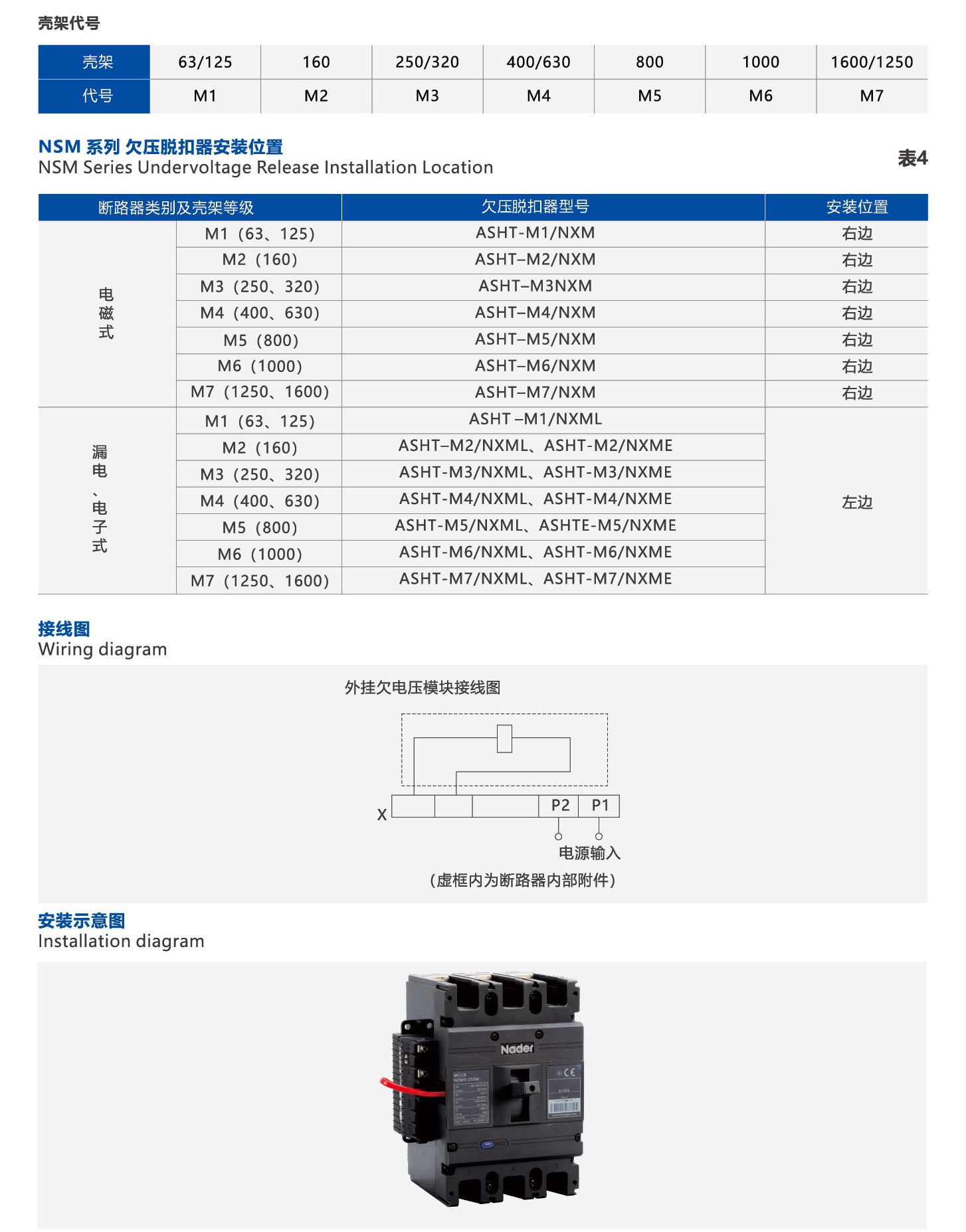 AQT/M3、AMX/CDM3、ASHT/NXM、AMX/TGM1N型系列欠压脱扣器适配于CM3、CDM3、NXM、TGM1N系列塑壳式断路器,用做配电线路的欠压保护。产品符合标准GB/T14048.2和IEC60947-2的有关要求。